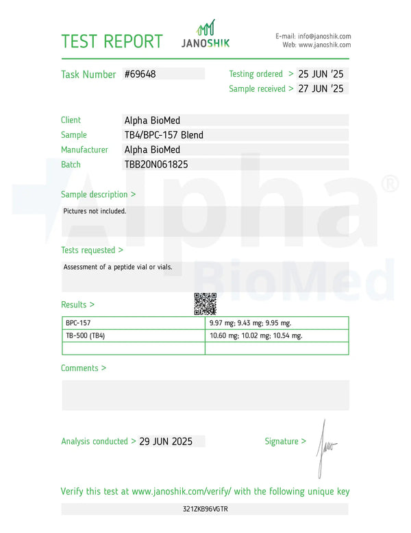 Each lot is sourced through our verified global supply chain with emphasis on traceability and quality control. We work diligently to obtain and maintain third-party analytical reports (HPLC/LC-MS) and Certificates of Analysis for each batch, as part of our ongoing quality process. These documents are reviewed internally and displayed as they become available. Independent third-party testing is also performed on select lots to confirm identity, purity, and alignment with our internal specifications.